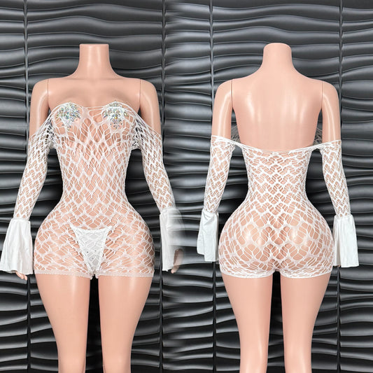 Sold outFlare Mesh Romper w/ Thong